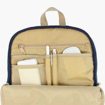 The two external pockets on the sides can store your water bottle and umbrella. Zip pockets at the front also allow convenient storage of small items.